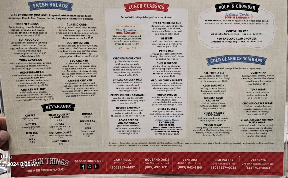 try all 3 of our most popular pancakes! one strawberry, banana and blueberry whip cream pancake.